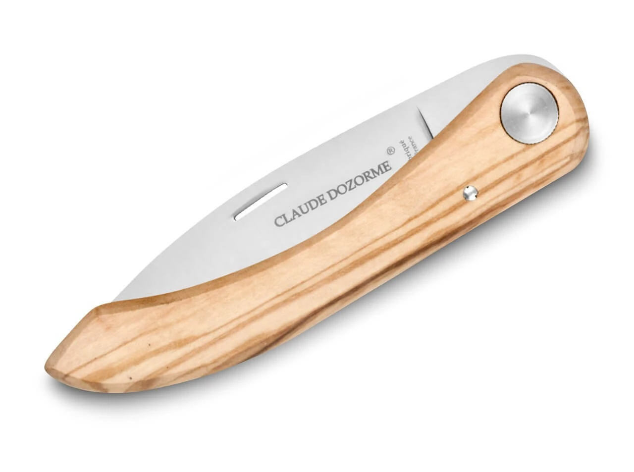 Das Capucin gilt als eine der ältesten Messerformen Frankreichs und stammt ursprünglich aus den Pyrenäen. Das Capucin Olive der Manufaktur Claude Dozorme in Thiers ist ein puristisches und handgefertigtes Klappmesser ohne Arretierung. Die 9,5 Zentimeter lange Klinge mit einer 8,5 Zentimeter langen Schneide besteht aus X50CrMoV15 Stahl und wird per Nagelhau geöffnet. Der Klingengang des Capucin Olive kann mit Hilfe des mitgelieferten Schlüssels eingestellt werden. Die aus einem massiven und sehr schön gemaserten Stück Olivenholz gearbeitete Griffschale liegt sehr angenehm in der Hand. Ein elegantes Brotzeitmesser für die französischen Momente im Leben.