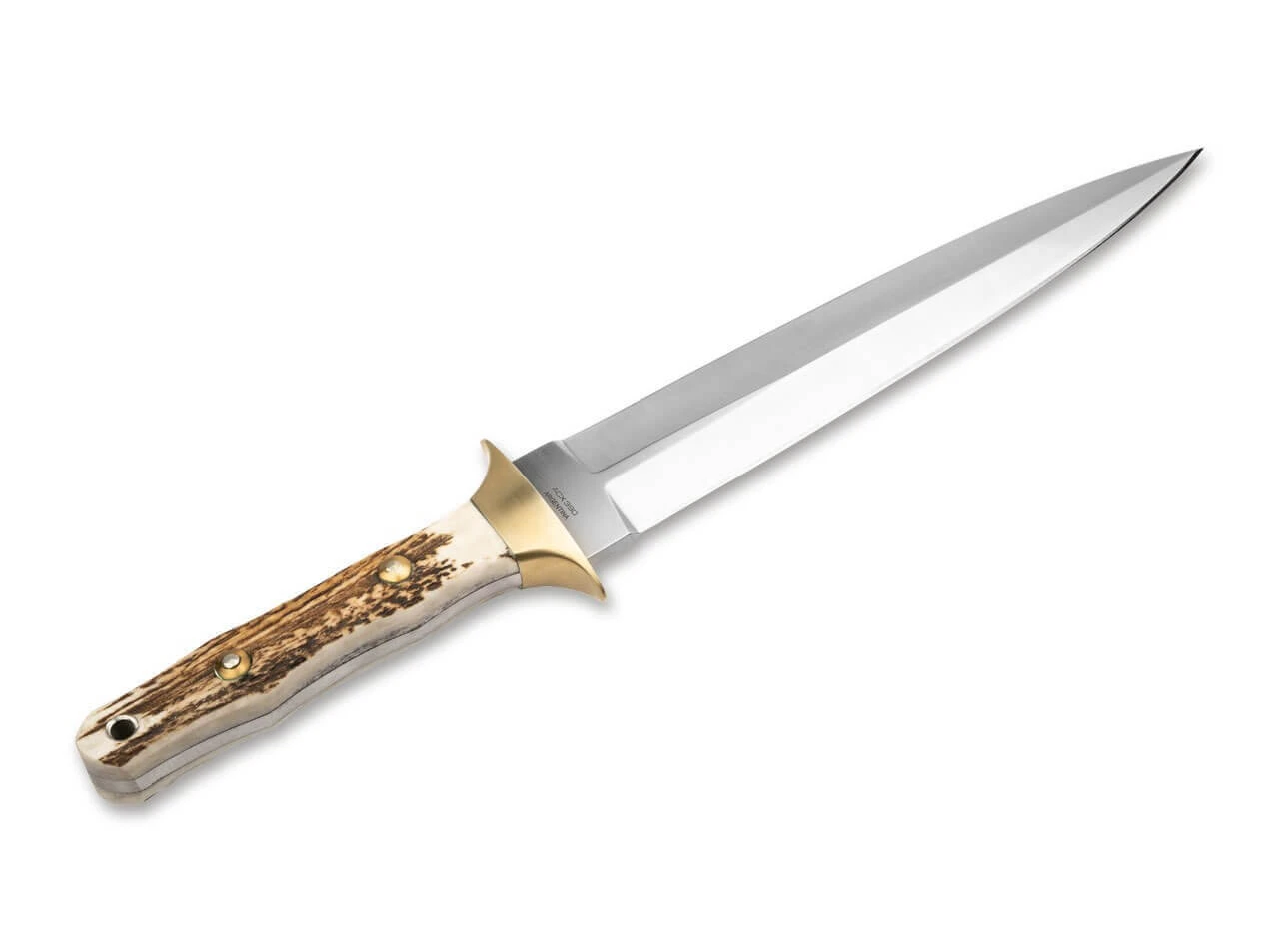 Das Böker Arbolito Colmillo ist als klassischer Hirschfänger mit einer langen Dolchklinge ausgestattet und beeindruckt mit seiner stabilen Vollerl-Konstruktion und seiner beachtlichen Größe selbst erfahrene Jäger. Die beidseitig abgezogene Klinge aus ACX 390 ist mit einem feinen Satin-Finish versehen, der ausladende Handschutz besteht aus Neusilber. Für die ergonomisch geformten Griffschalen kommt echtes Hirschhorn zum Einsatz, das die traditionelle Anmutung des Messers zusätzlich unterstreicht. Mit Fangriemenöse und hochwertiger Gürtelscheide aus braunem Leder.