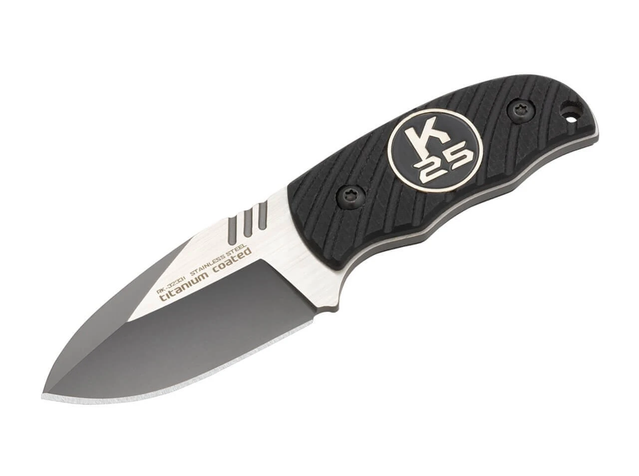 Das K25 Dakar ist ein kleines und handliches Messer, dass trotz der kompakten Dimensionen eine Menge Nutzwert bietet. Das Neck Knife ist mit einer 7Cr17MoV-Klinge und Griffschalen aus schwarzem G10 ausgestattet. Der ergonomisch geformte Griff ist mit einem großen K25 Logo und einer Fangriemenöse versehen. Lieferung mit passgenauer Kydex-Scheide und Kugelkette.