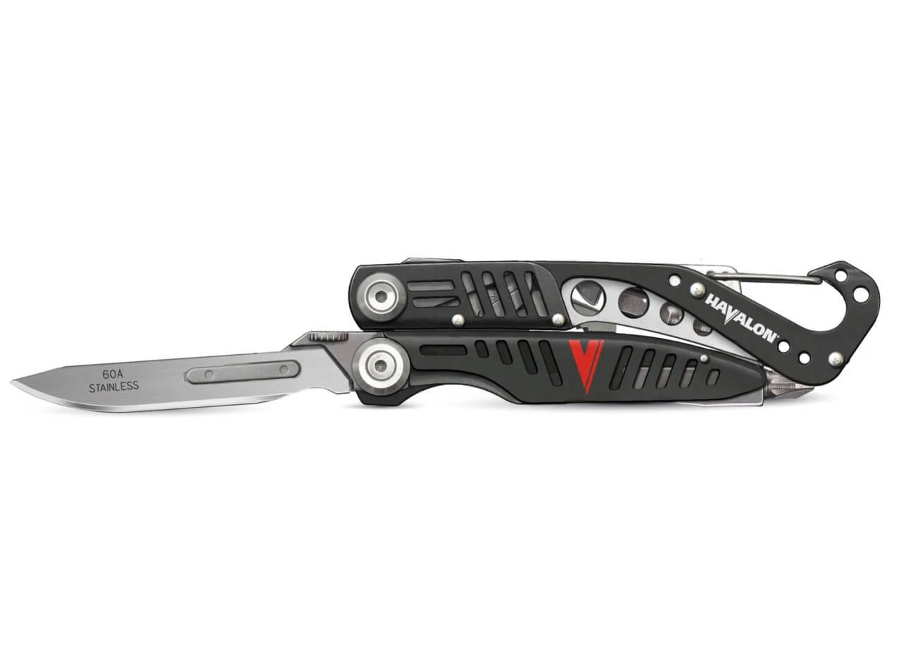 Das Evolve ist nach einer Idee von Jim Shockey entstanden, der ein Multi-Tool verwirklichen wollte, das durch die Beschränkung auf die wirklich notwendigen Werkzeuge möglichst leicht und kompakt bleibt. So besitzt das Evolve einen skelettierten Edelstahlgriff mit schwarzer Titannitrid-Beschichtung und einen stabilen Zangenkopf mit zwei Drahtabisolierern und einem Drahtschneider. Des Weiteren ist eine ausklappbare Havalon Piranta-Wechselklinge enthalten, die per Linerlock verriegelt. Für den jagdlichen Einsatz enthält das Evolve einen ausklappbaren Aufreißhaken, der natürlich auch anderweitig eingesetzt werden kann. Die Bitaufnahme ist für Standardbits im Format 1/4″ ausgelegt, wobei ein Doppelbit mit Schlitz-/Kreuzschlitz im Lieferumfang enthalten ist und im Griff Platz für zwei weitere Standardbits zur individuellen Bestückung vorhanden ist. Mit dem integrierten Karabiner kann das Tool problemlos an der Ausrüstung gesichert werden. Lieferung mit Cordura-Etui.