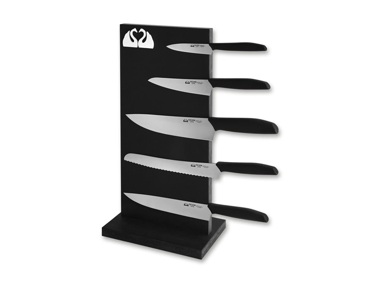 Das magnetische Messerdisplay von Due Cigni wird aus Massivholz gefertigt und kann zur edlen Präsentation von bis zu fünf Kochmessern genutzt werden. Entworfen wurde das Display für die Due Cigni 1896 Serie, kann aber selbstverstädnlich auch für andere Messer genutzt werden. Auch in der Küche lassen sich die Messer damit modern in Szene setzen.