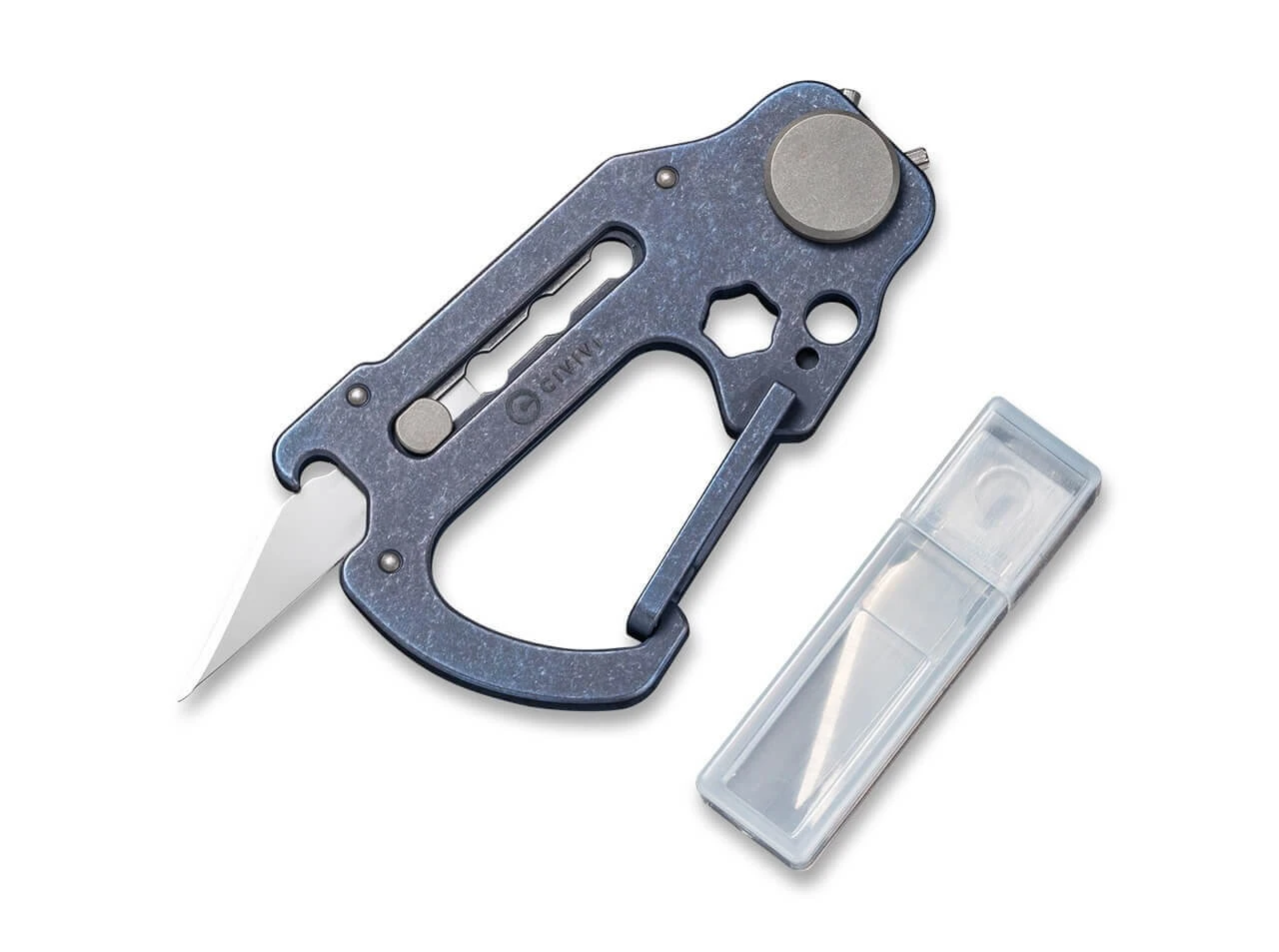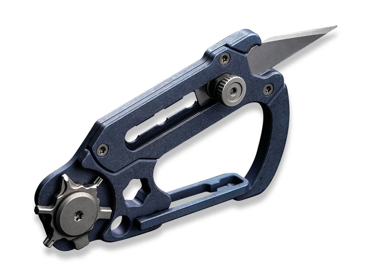 Hier ist der Name Programm. Das vielseitige und kompakte Multitiool hat viele Gesichter und präsentiert sich als praktischer Helfer im Alltag. Seine Konstruktion aus blauem Titan enthält einen Karabiner sowie eine herausschiebbare Klinge aus 9Cr18MoV. Das kleine Rad im hinteren Bereich ist u.a. mit Inbus und Torx ausgestattet. Lieferung mit 3 Klingen.