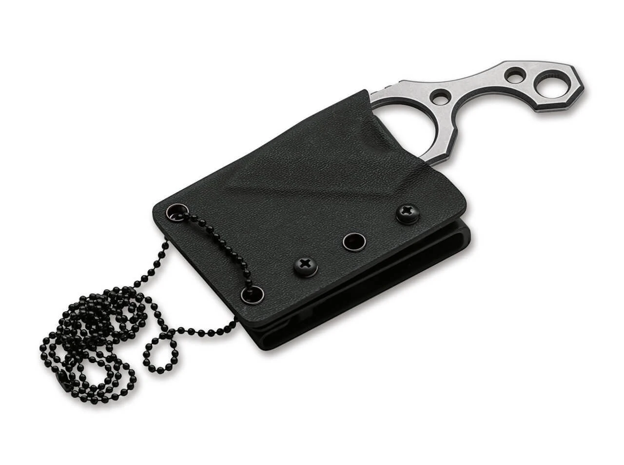 Das von Simon Frömel entworfene Böker Plus Rescue Kiridashi überzeugt als leichtes Backup-Messer für den Notfall. Die angewinkelt abgesetzte Klinge mit gerader Schneide ist beidseitig geschliffen und kann dank der speziellen Griffhaltung sehr präzise eingesetzt werden. Die ausgeprägten Riffelungen im Bereich der Daumenauflage sorgen zudem für mehr Stabilität und Sicherheit beim Schneiden. Die skelettierte Ganzstahlkonstruktion aus 440C ist zusätzlich mit einem praxistauglichen Gurtschneider ausgestattet. Durch seine kompakten Abmaße und das geringe Gewicht eignet sich das Rescue Kiridashi für die unterschiedlichsten Trageweisen, wobei die Kydexscheide nicht nur mit dem beiliegenden Adapter am Gürtel befestigt werden kann, sondern mit der Kugelkette auch die Verwendung als Neck Knife möglich ist. Mit Fangriemenöse.