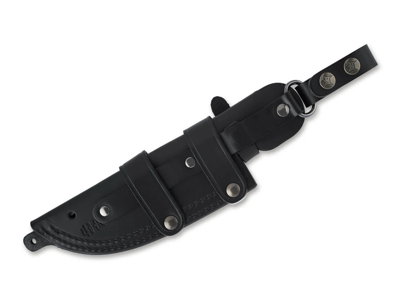 Bereit für das nächste Abenteuer? Das Fox Sherpa wartet schon auf seine nächste Expedition und definiert die Rolle des Lastenträgers völlig neu. Das Outdoormesser scheut weder Höhenluft noch Wildnis und bahnt sich dank wuchtiger D2 Klinge ungeahnte Routen. Die Klinge ist mit einer widerstandsfähigen schwarzen Idroglider-Beschichtung versehen. Orientierung gibt auch bei widrigsten Außenbedingungen der rutschfeste Griff aus texturiertem Micarta. Mit hochwertiger Lederscheide, die sowohl vertikal als auch horizontal am Gürtel getragen werden kann.