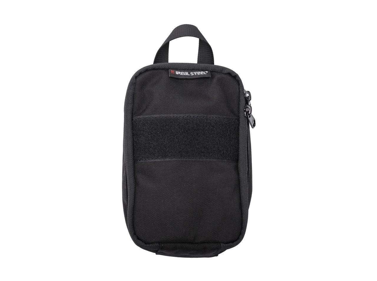Mit dem praxistauglichen Survival Kit Elementary von Real Steel sind auch Einsteiger für alle Eventualitäten in der Wildnis gewappnet. Die hochwertige schwarze Tasche kann problemlos am Gürtel oder der Ausrüstung befestigt werden und beinhaltet neben dem Real Steel Marlin von Ostap Hel zahlreiche nützliche Ausrüstungsgegenstände: Einen Kompass, zehn Meter Paracord, einen Feuerstarter, eine Rettungsdecke, eine Signalpfeife, einen Signalspiegel, eine Laubsäge, vier Angelhaken, Angelschnur, Flickzeug und Sicherheitsnadeln. Insgesamt wiegt das Set dabei nur 400 Gramm. L x B x H: 14 cm x 19 cm x 5 cm