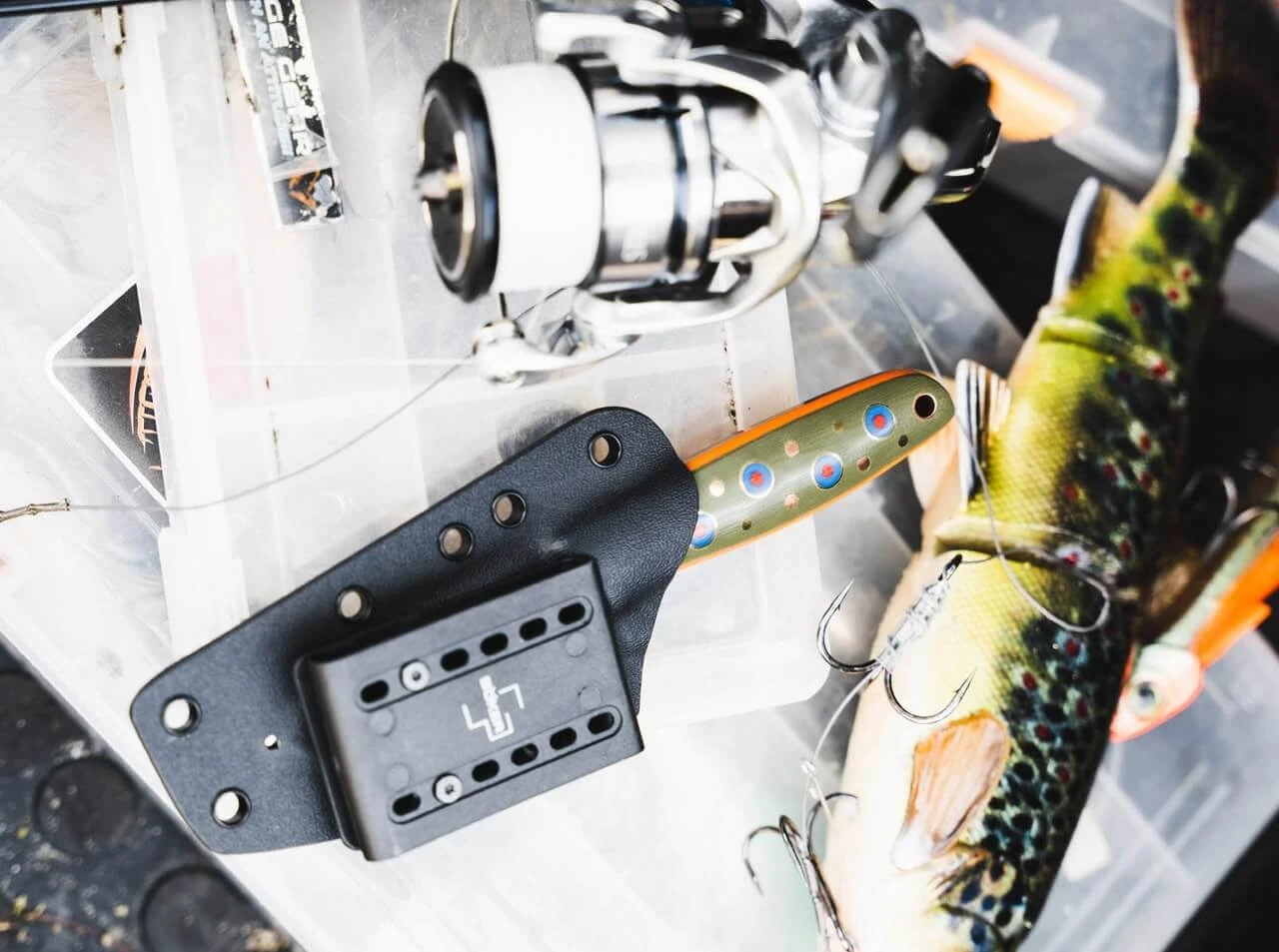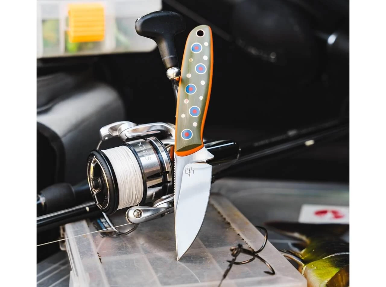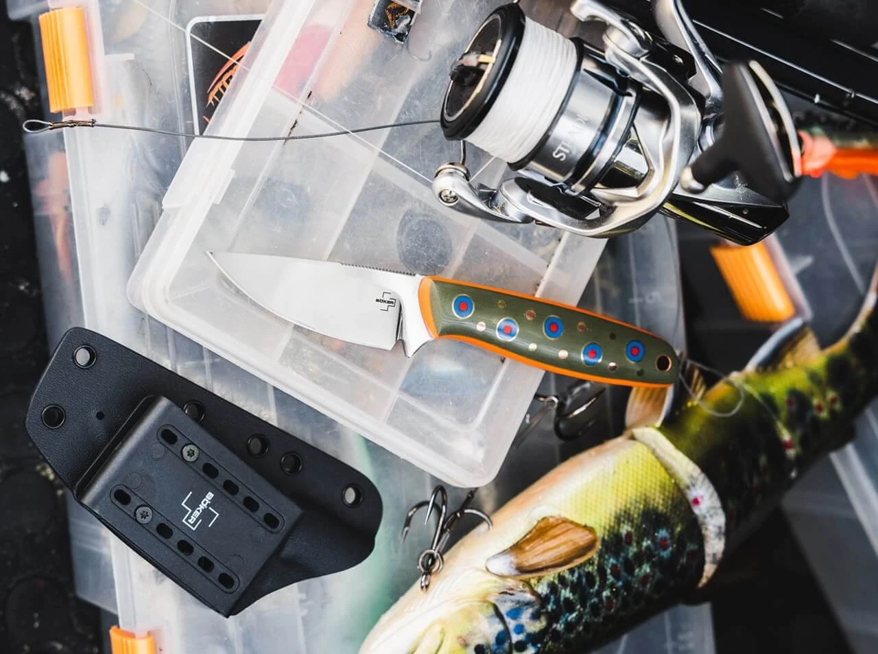 Das außergewöhnliche Böker Plus The Brook ist ein zuverlässiges Jagd- und Outdoormesser, das sich nicht nur aufgrund seiner optischen Ähnlichkeit zu den farbenfrohen Bachsaiblingen heimischer Gewässer als ideales Anglermesser anbietet. Das von Joe Mangiafico aus Oregon entworfene Messer ist mit einer polierten Klinge aus VG-10 und einem Griff aus G10 ausgestattet, dessen verspielte Farbgebung von den bunten Schuppen der weit verbreiteten Lachsfische inspiriert wurde. Der leidenschaftliche Fliegenfischer angelt seit seiner frühesten Kindheit in den Bächen und Flüssen Nordamerikas und begeistert sich seit seiner Zeit am College für das Entwerfen und Fertigen von Messern. Dank Fangriemenöse, Gürteladapter und passgenauer Kydex-Scheide ist das The Brook stets griffbereit.