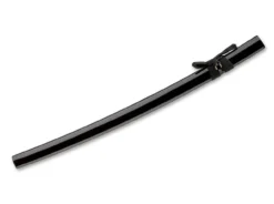 Das Honshu Boshin Black Damascus Wakizashi von United Cutlery beeindruckt durch seinen speziellen handgeschmiedeten Damast, der in unzähligen Farbfacetten von Umbra über Mocca bis hin zu tiefem Onyxschwarz schillert. Die traditionelle Hohlkehle der Klinge kontrastiert reizvoll mit dem modernen Heft aus griffig strukturiertem TPR und der einseitigen Tsuba. Das Kurzschwert wird mit traditionell gestalteter Scheide mit Wicklung geliefert. Ein faszinierendes Sammlerstück, das mit seiner ganz eigenen Anmutung der Blickfänger jeder Schwertsammlung wird.