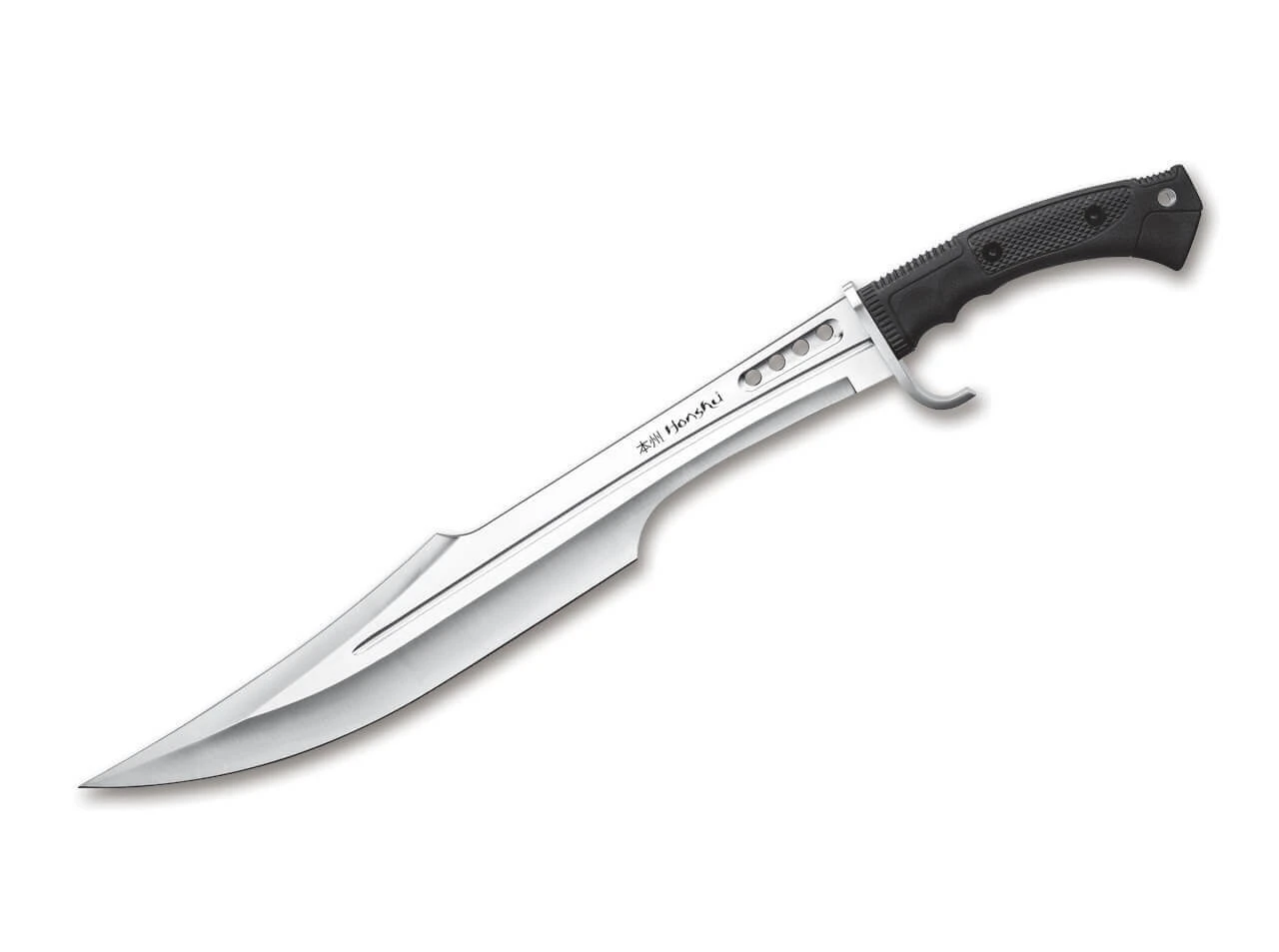 Die gelungene Kombination aus der klassisch-spartanischen Schwertform und den modernen Elementen der Honshu-Serie beschert uns dieses atemberaubende Funktionsschwert von United Cutlery. Die Durchbrüche in der spektakulär geschwungenen Klinge, die stabilitätsfördernde Sicke und der Griff aus strukturiertem TPR ergeben ein modernes Schwert, das in jeder Sammlung eine Sonderstellung einnimmt. Mit Edelstahl-Parierelement. Auslieferung mit passgenauer Lederscheide.