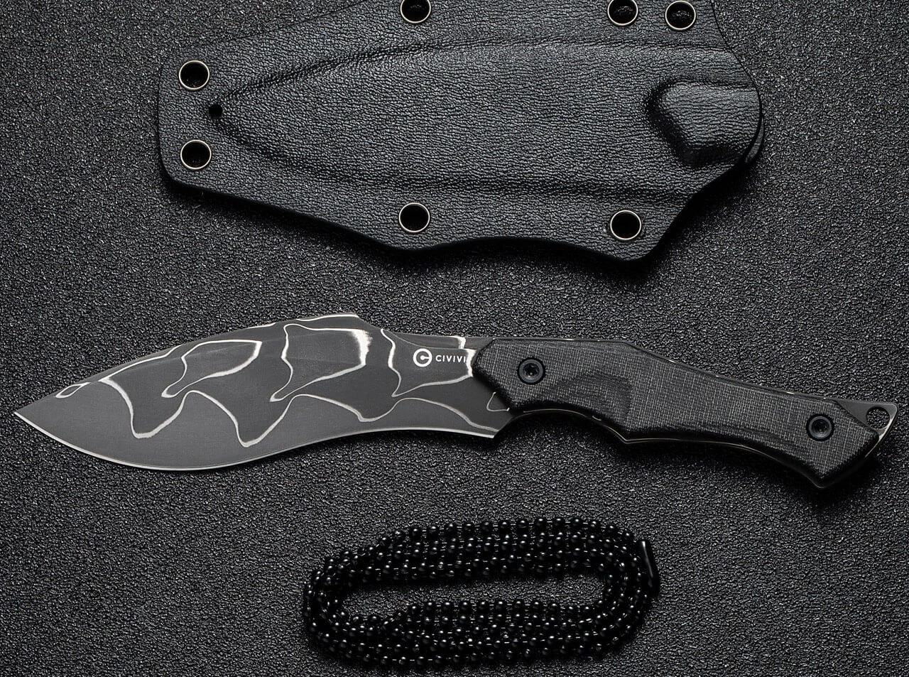 Benannt nach einem Zwergwal tummelt sich das robuste Outdoormesser geschmeidig durch Alltag und Unterholz. Mit der Kukri Klinge aus Damast gehen Schnitte als auch kleine Hackarbeiten spielend von der Hand. Die nötige Stabilität liefert die Vollerlbauweise, während die ergonomischen Griffschalen aus schwarzem Micarta angenehm und sicher in der Hand liegen. Dank Kydexscheide, Kugelkette und Fangriemenöse der ideale Begleiter für das nächste Abenteuer in der Natur.
